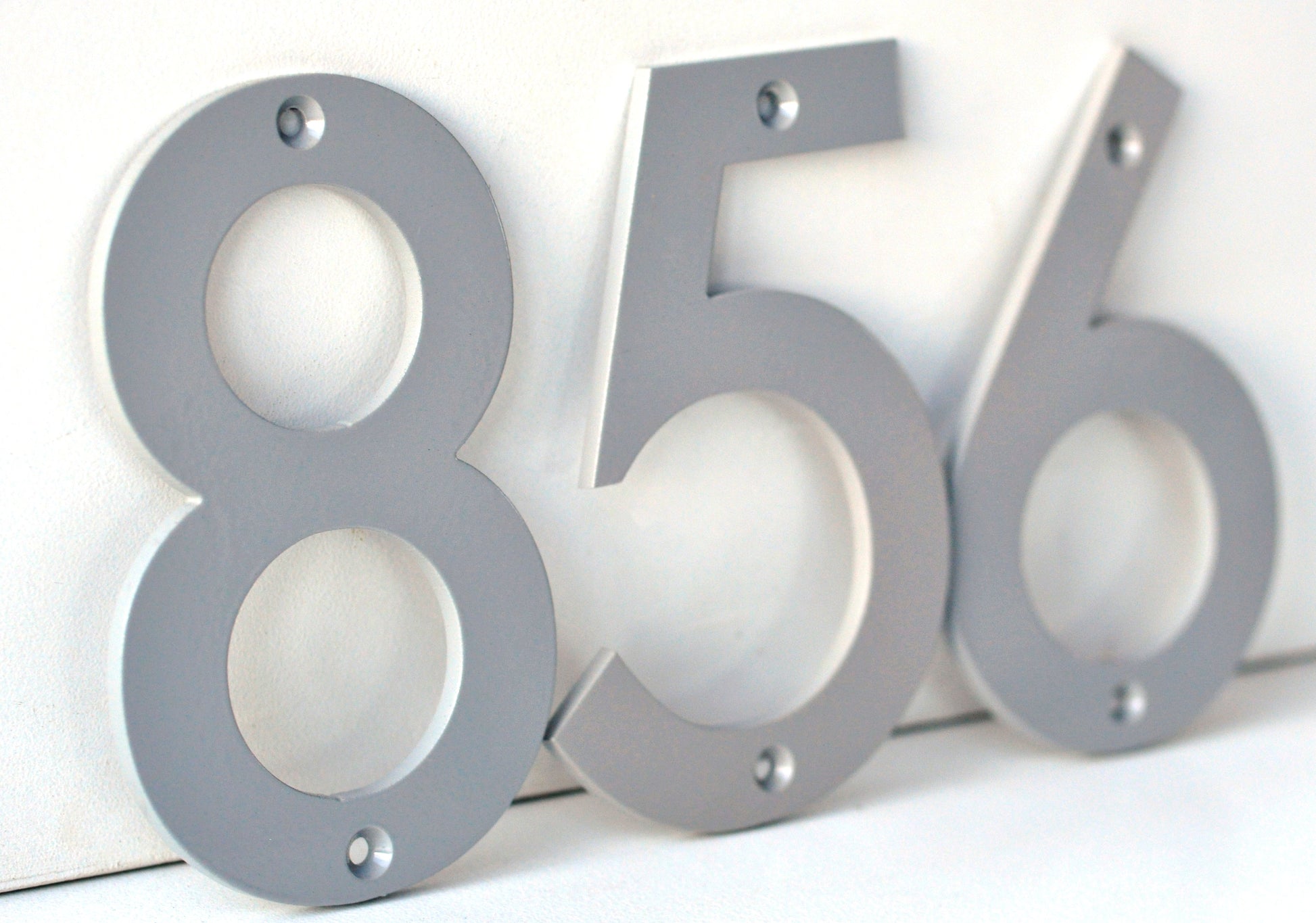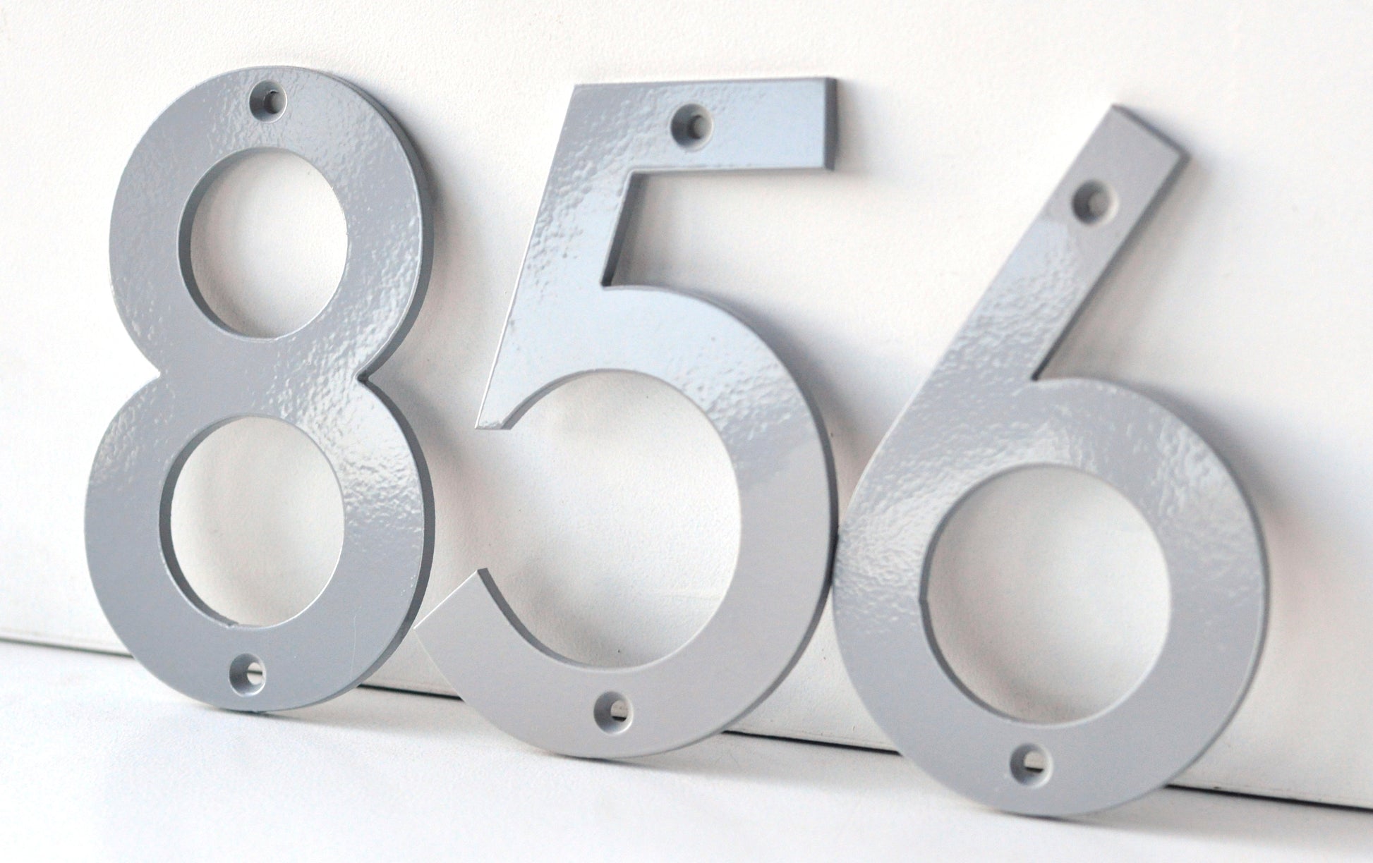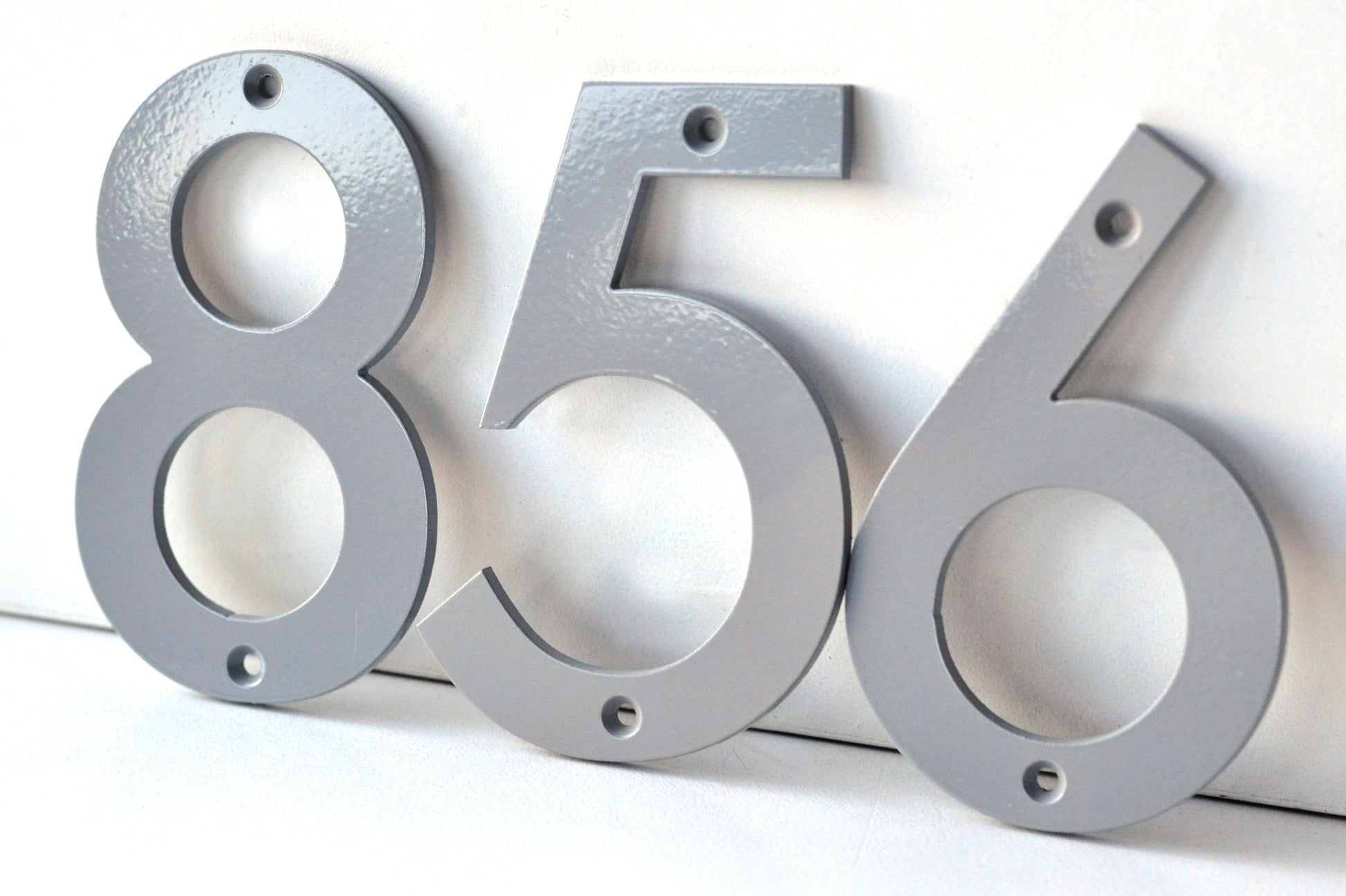 Coastal Grey Powder Coated Aluminum Numbers These understated coastal grey numbers offer versatile sophistication that complements any architectural style. Expertly water jet cut from 3/16" aluminum in Huntsville, Alabama, they measure 6 inches tall with balanced proportions for refined visual presence. Matching screws are included for hassle-free installation. The powder coating application—where fine powder is electrostatically applied and thermally fused—creates a metallurgically bonded finish engineered to endure environmental exposure while resisting chip, crack, and flake deterioration. Manufactured from premium-grade aluminum with meticulous precision, these numbers deliver understated elegance and proven durability. Their weather-resistant finish maintains appearance and integrity through years of outdoor conditions, making them an investment in lasting curb appeal.