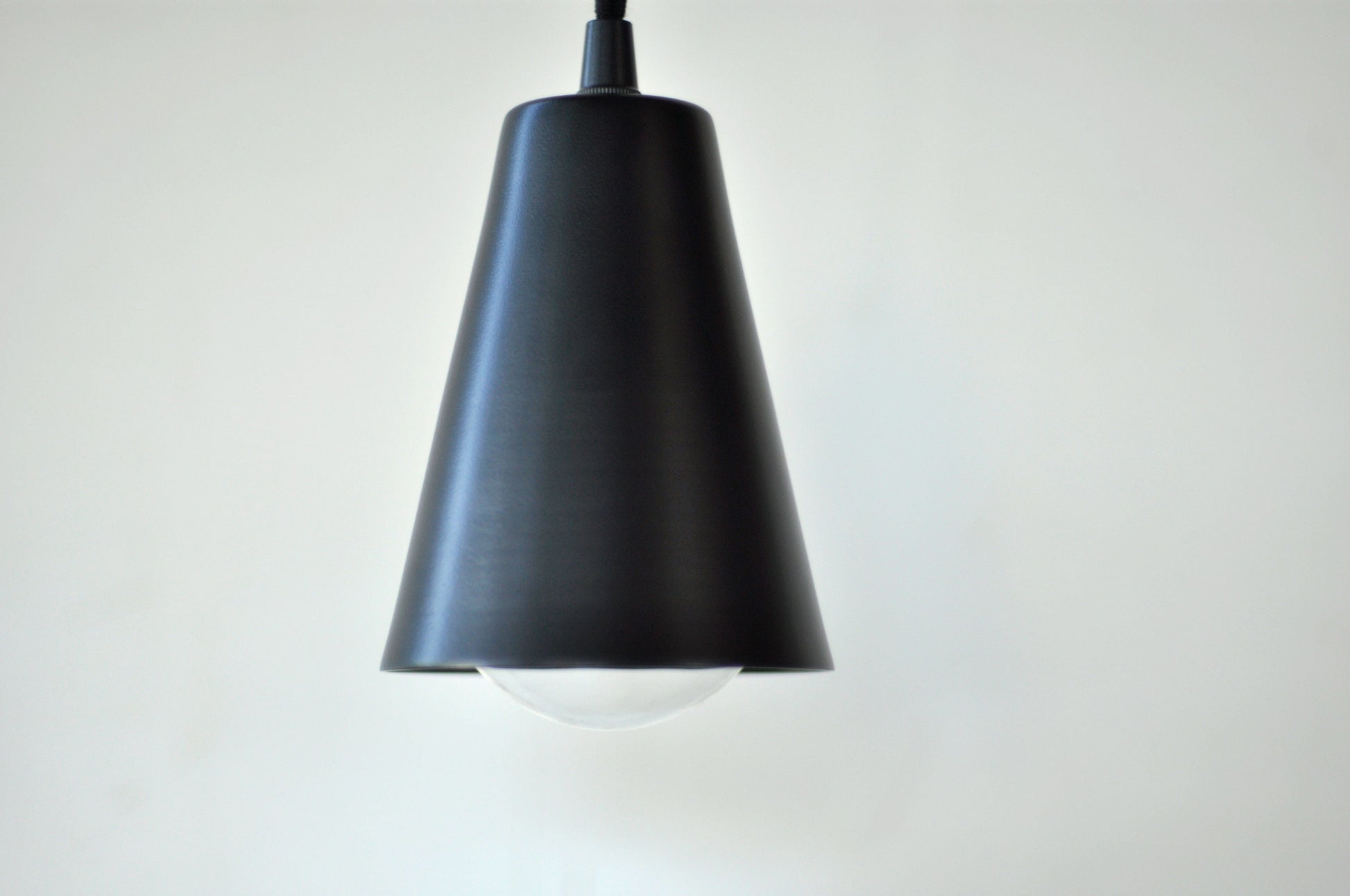 Achieve timeless sophistication with this sleek pendant light showcasing a seamlessly spun metal cone in classic Black. Constructed from 18-gauge steel, the 5" H x 4" diameter cone suspends from 5' of vintage-inspired black twisted wire for cohesive industrial aesthetics. This comprehensive kit delivers a UL-listed Leviton E-26 porcelain socket (660W max, 250V max, E3810), white powder-coated canopy, mounting cross bar for standard electrical boxes, and complete hardware for ceiling installation. The neutral black finish pairs effortlessly with any décor style while the hardwired setup ensures dependable performance and clean installation. Made to order; allow 3-4 weeks for production.