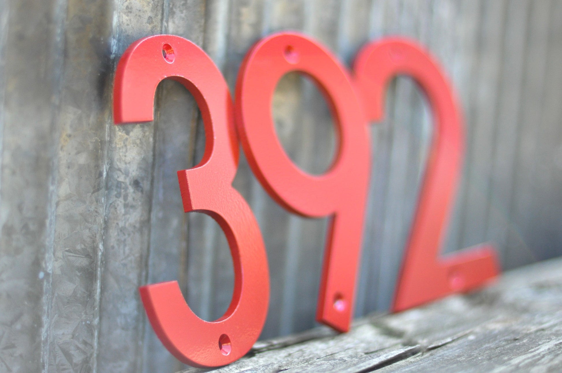 Red Powder Coated Aluminum Numbers Make a bold statement with these striking red aluminum numbers, precision water jet cut from 3/16" stock in Huntsville, Alabama. Standing 6 inches tall, they blend contemporary vibrancy with timeless design principles for maximum curb appeal. Each set includes matching screws for straightforward installation. The powder coating process—where fine powder is electrostatically applied and thermally fused in an oven—creates an exceptionally durable surface that withstands environmental exposure while resisting chip, crack, and flake damage. Engineered from premium-grade materials, these numbers deliver commanding visual presence and proven longevity. Their weather-resistant finish ensures your address remains vibrant and protected for years of reliable performance.